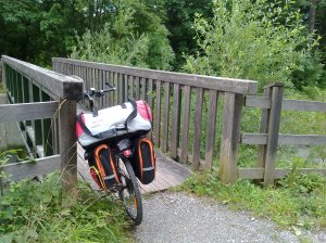 Here is the bike all loaded up. It feels quite heavy, but the 7,5 Kilos I’ve lost with the low-carb diet, should compensate a bit!